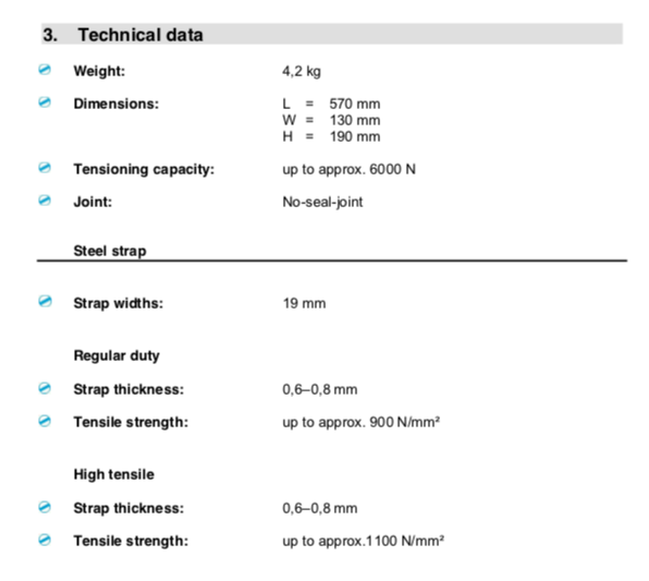 免扣钢带打包机一般适用于平面包装,例如箱体、栈板和其他各式类似的包装形式,免扣钢带打包机不需要使用另外的钢扣;其特点主要在于免扣连接的平均抗拉强度约为钢带抗拉强度的80%,十分可靠,并且可以节约大约10%的整体包装成本。应用于几乎所有领域的通用型钢带打包工具,使用可靠,设计坚固,易于操作并且较为轻便。