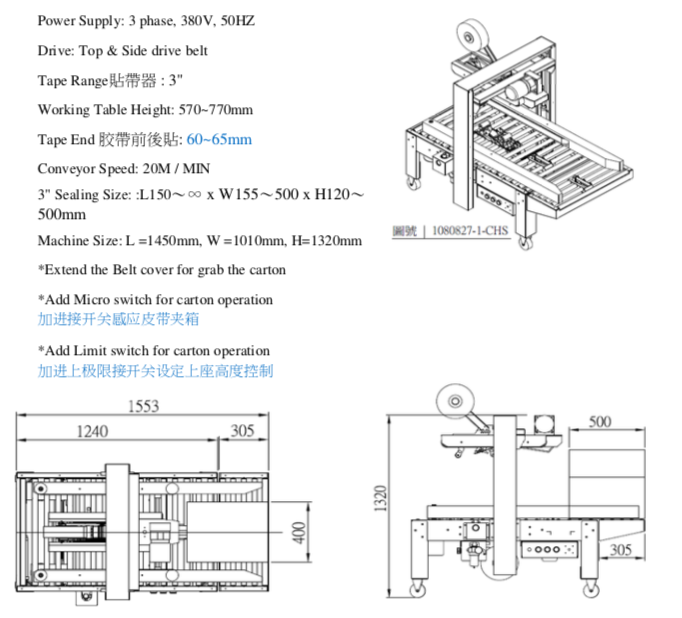 CHUENAN上部&兩侧皮带传动封箱机CHS-6603A机芯